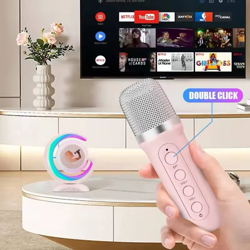 - ميكروفونات مزدوجة لاسلكية: مثالية للكاريوكي مع الأصدقاء والعائلة.