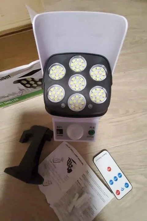 الكشاف علي شكل كاميرا مكون من 77 لمبة ليد قوية وسينسور استشعار حركة ولوح طاقة شمسيه مدمج